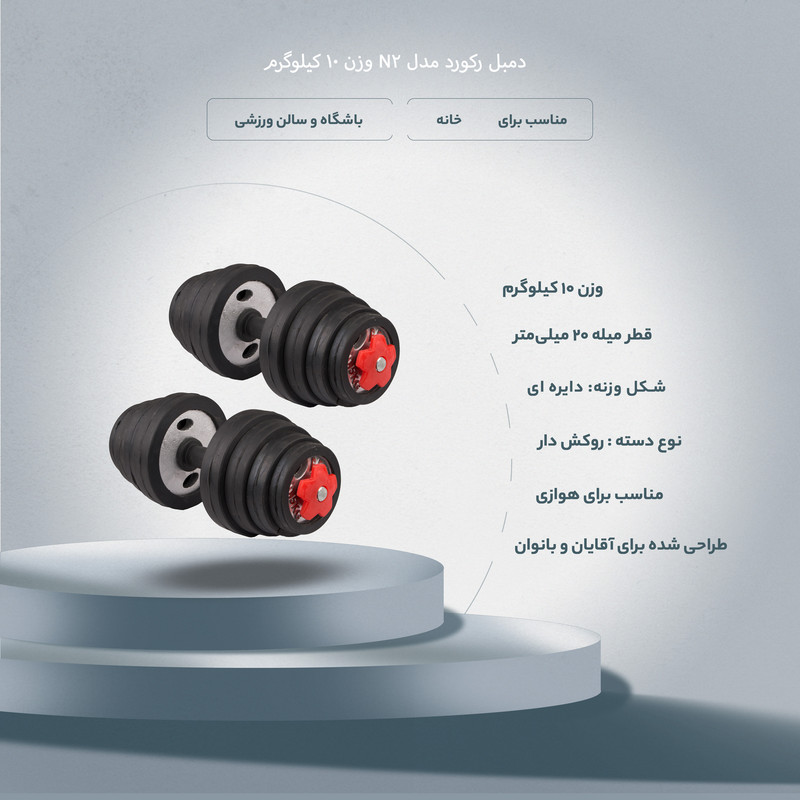 دمبل رکورد مدل N2 وزن 10 کیلوگرم بسته 2 عددی
